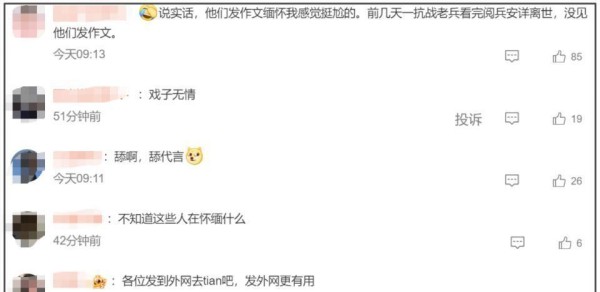 还有网友直接调侃明星们对阿玛尼的悼念,比起转发抗日80周年的纪念还积极,评论底下也蹭蹭涨了不少赞。有的人直接说:“悼念资本家到底帮咱们啥忙?”还有的疑问:“前两天阅兵的时候,这帮明星也没这么上心地发点儿动态,老兵看完阅兵平平淡淡走了,也没见哪个明星出来悼念一下。”