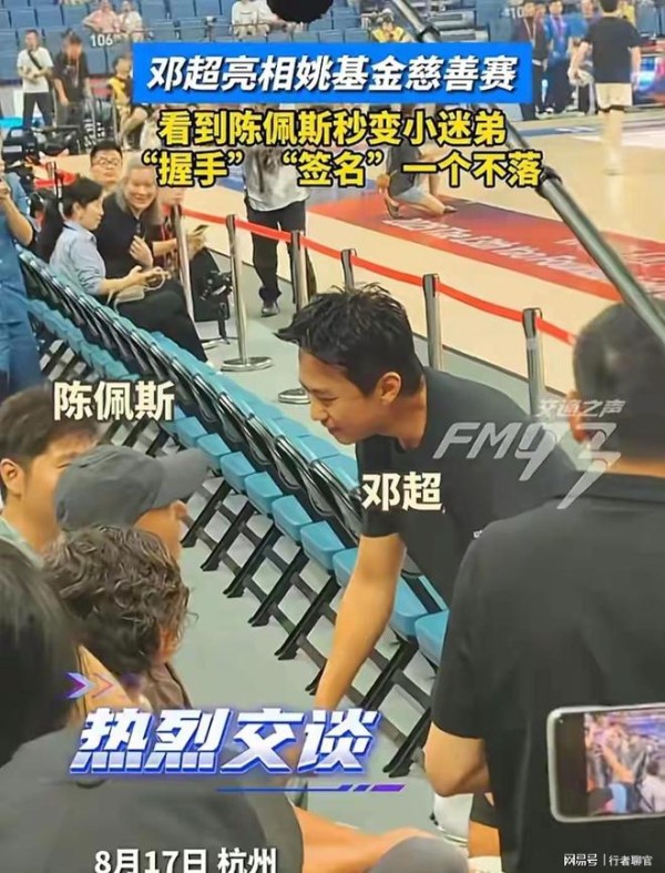 邓超作为姚基金慈善会的嘉宾兼篮球赛球员,在赛场上十分活跃。当他注意到陈佩斯坐在观众席后,立刻一路小跑过去,不仅与陈佩斯亲切握手示好,还拿出篮球请陈佩斯签名,秒变“小粉丝”。从这些细节可以看出,陈佩斯在大家心中的地位依旧崇高,他依然是众多中国人喜爱的喜剧大师。