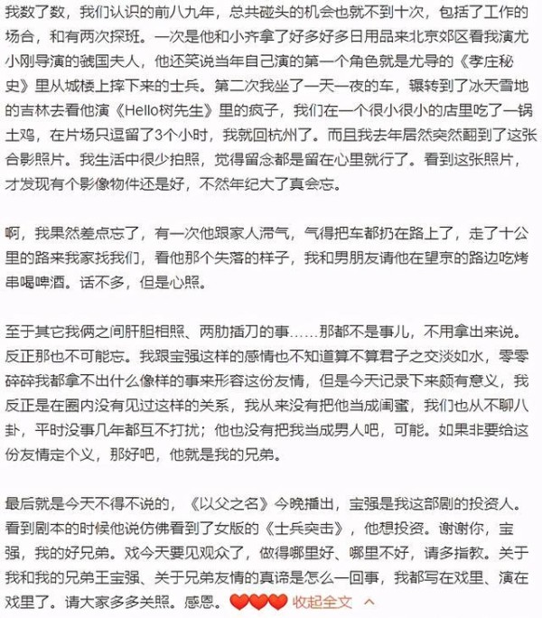 近日叶璇更是发长文谈起了这位老友王宝强,肯为王宝强写这么多字,关系真不错,叶璇回忆了这11年和王宝强的点点滴滴,友情令人感动,从合作第一部戏说起,竟然已经11年了