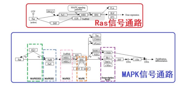 MAPK信号通路是通过MAPKKKK→MAPKKK→MAPKK→MAPK→转录因子的途径,而Ras使之激活了MAPKKK,而同时Ras还能激活其他非MAPK信号通路,比如可以激活PI3K/AKT等等……