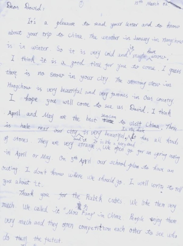 在西湖边的一座亭子里,他们第一次合影留念。之后,马云与莫利一家更是成为了笔友,双方书信往来频繁。老莫利在回信中,还会细心地纠正马云语法上的小错误。