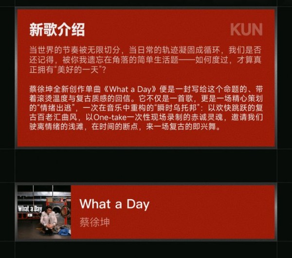 蔡徐坤新歌《What a Day》上线网易云音乐!