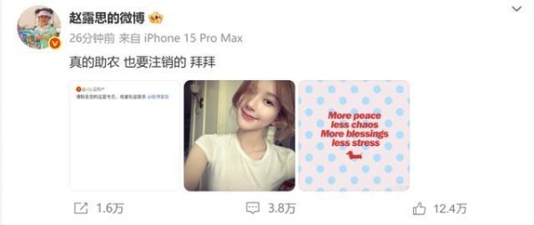 有意思的是,在这种混乱局面中,她偏偏选择直播和粉丝零距离互动,人气蹭蹭上涨,却又因为帮农产品卖货时被质疑广告虚假宣传,被迫关微博撤退。