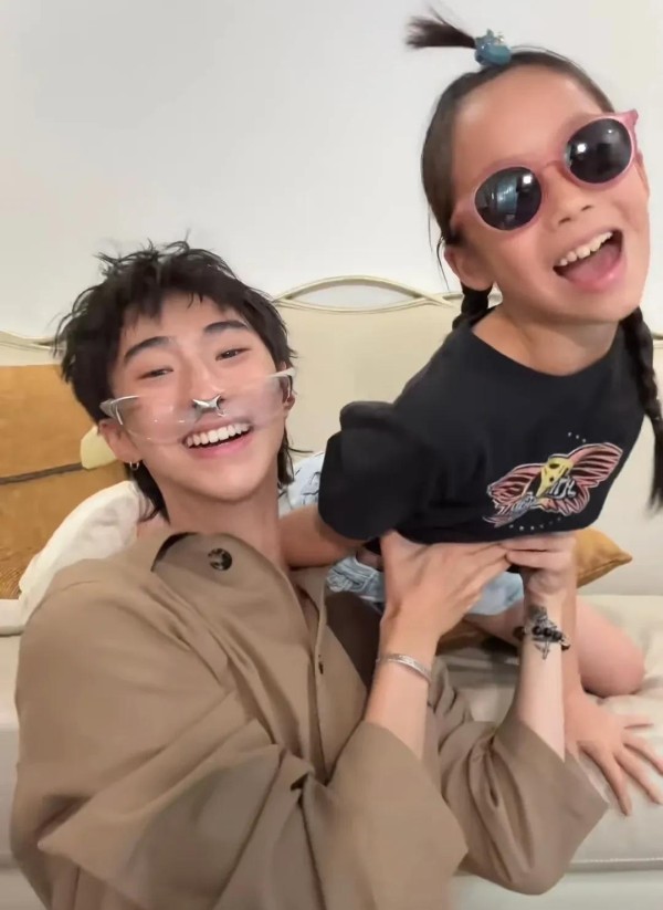 伊能静女儿助哥哥哈利推广新曲,九岁米粒扎高辫酷似秦昊