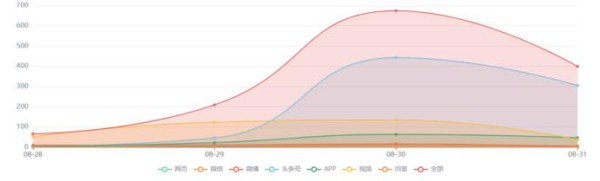 根据清博智能智舆情系统,可以看到从8月29日到30日,舆情迅速发酵,主要平台侧重在微博和头条号上。随后热度虽有所回落,但仍有较高的关注声量。