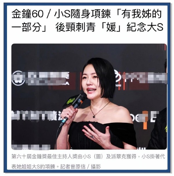 在媒体采访中,小S不仅分享了项链的深意,还向观众们展示了脖子后面新刺的纹身。她自豪地表示,这个纹身是她亲手写的字,而为其纹上这一作品的人,正是大S生前挚友范晓萱。