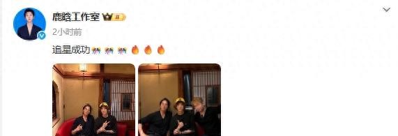 鹿晗与日本艺人山下智久合照 工作室晒图并配文:追星成功
