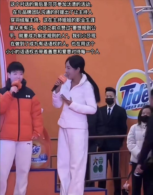 不过最让我感动的,还得是这次活动里的一个小插曲。当时现场空调开得跟不要钱似的,女主持人穿着单薄的礼服直打哆嗦。孙颖莎上台前就盯着人家看了好几眼,后来实在看不下去,转头就跟主办方说:"姐们儿穿这么薄可不行,赶紧给找件羽绒服来!"后来才知道,这已经不是她头回干这事了。去年有个慈善晚会,她愣是把主办方准备的裙子全给退了,非让工作人员换上厚外套才肯上台。要我说,这姑娘不光球打得好,心眼儿也是真好使。