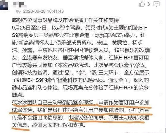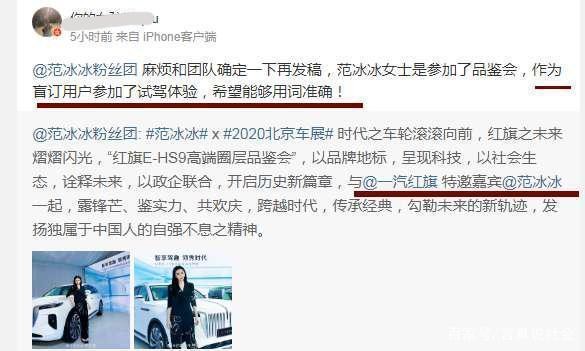 范冰冰为红旗汽车站台,红旗方却表示没邀请,团队自导自演蹭热度