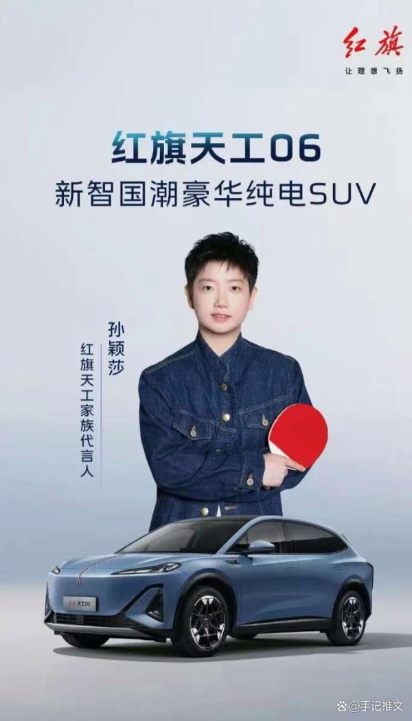 孙颖莎代言红旗新能源车,成为新一代国民品牌代言人!