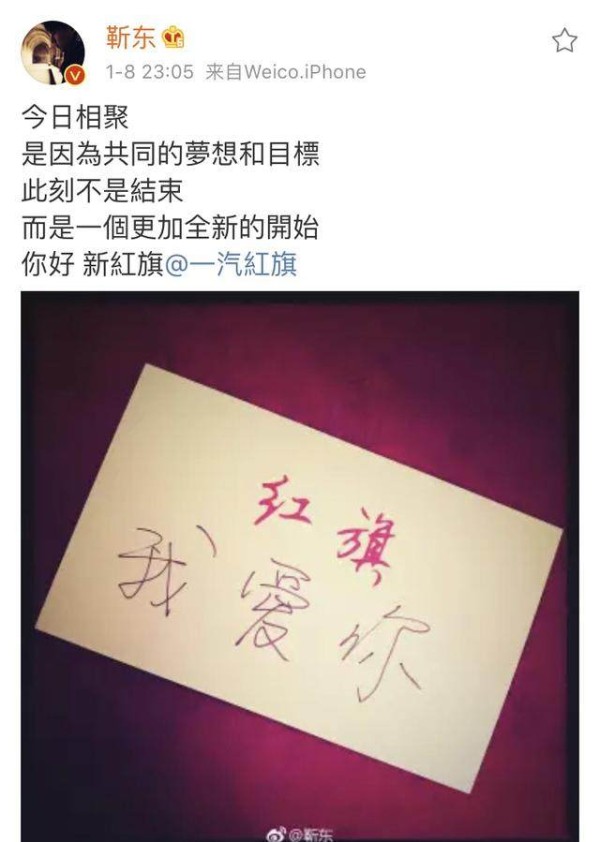 在一汽行政事务中心,靳东在工作人员的引导下参观了中国一汽展馆,回顾了一汽的创业历史,并在沟通中提出了独到见解。有感于红旗品牌的深厚底蕴,靳东郑重写下了“旗开得胜,国之甄选”的诚挚祝福。随着红旗品牌全面复兴战略的开启,红旗车又开始走进了我们的视线,红旗H5以不到15万的起步价成为了目前最亲民的红旗车,当然,最霸气最具代百姓的还是旗舰级的红旗L5,不仅是五六百万的售价,单就气场而言红旗L5就已经完胜宾利劳斯莱斯。正如靳东所言:“红旗所秉承的这种价值观和态度对每个中国人都是一种鼓舞和激励。我也曾经经历迷茫,但是坚持踏实做自己,在磨练演技的同时也在磨练内心,这是我对自己的要求,也是我与红旗的共鸣。”