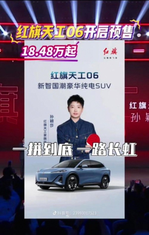 孙颖莎代言红旗新能源车,成为新一代国民品牌代言人!孙颖莎代言红旗引热议:跨界合作成败几何?