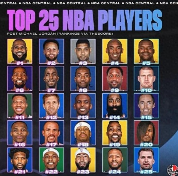 乔丹是在2003年才真正退役的,但说实话,他在奇才打的那两年就是玩票性质,也没取得任何成就,对职业生涯没有任何的加成。乔丹真正影响联盟的时间,还是在1998年6月份往前,距离现在已经过去了25年的时间。在这期间,联盟又诞生了无数的巨星,虽然他们都无法超越乔丹取得的成就,但无疑也绽放了夺目的光彩。美媒《NBA CENTRAL》则评选出了后乔丹时代的NBA25大巨星:韦德9,杜兰特,科比屈居第4
