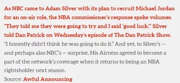 乔丹出山!NBC 转播天团迎来 GOAT,这次他要改写篮球解说史?