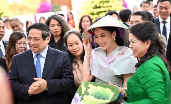 佩通坦此行最被热议的瞬间,莫过于她主动戴上越南传统斗笠。这一举动并非偶然——早在访华期间,她便以“中国红”礼服亮相,展现对东道主文化的尊重。