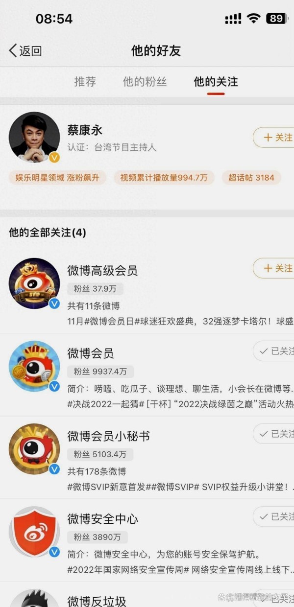 清空微博,撤销注重蔡康永:我已经做到仁义至尽,不跟你们玩了蔡康永微博取消全部关注,疑似与大小S划清界限,他不想装了?