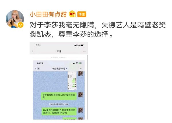 另外,小田田透露把隔壁老樊到KTV找小姐的视频发给了李莎旻子,而李莎旻子明确表示“不介意”,毕竟是小田田的一面之词,李莎旻子的想法到底是什么样,还需本人回复。