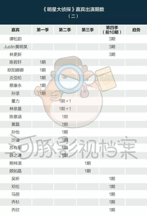 部分老嘉宾的出镜减少、新嘉宾的签约期数变多,这种趋势其实从《明星大侦探》第三季就开始了。但在当时,并没有形成如今这样汹涌的抵触情绪。