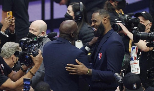 2022年克利夫兰全明星赛上,两人作为“75大巨星”代表在镜头前拥抱。