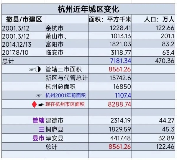 2.杭州2001-2017年杭州完成撤市/县建区大合并强省会策略。(杭州的去年GDP第一的是余杭区2936.4亿——余杭市,萧山(萧山市)区也名列前四。)