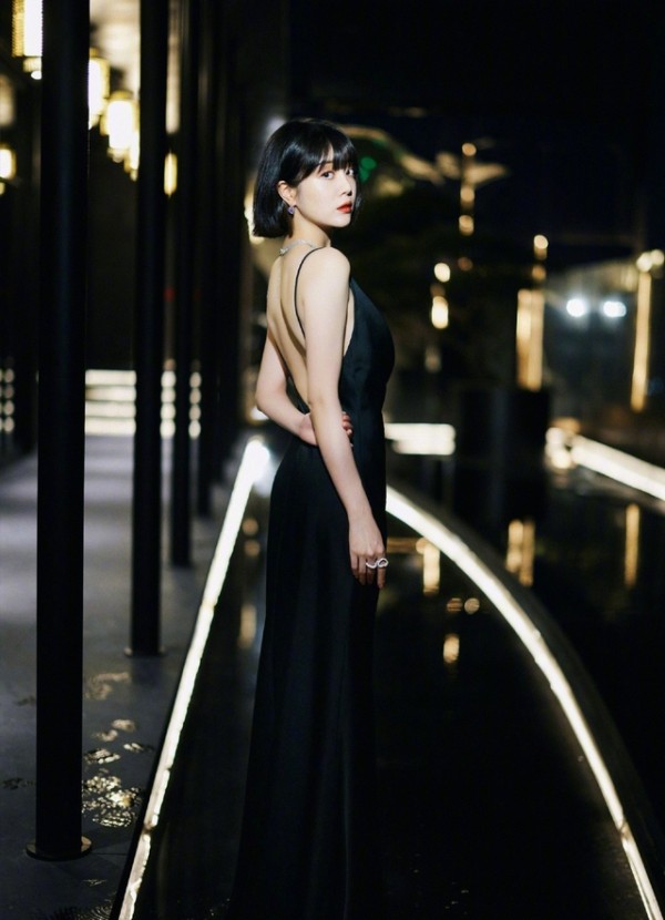 而针对黑色金丝绒面料的女裙而言,单一色彩的呈现实际效果会稍显低沉与压抑感,因此何不挑选一种具备清爽款式的女裙,例如,吊带裤款式的小黑裙。