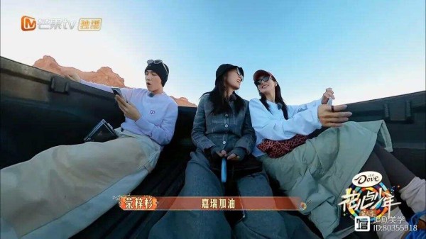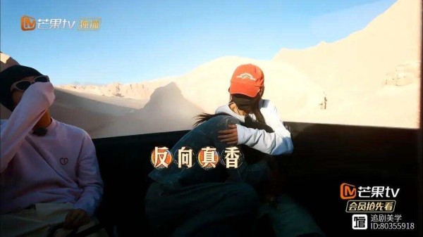 下午,花少团要去死亡谷,依然是自驾游。田嘉瑞第二次开皮卡。荣梓杉依然是坐在皮卡副驾上,后座换成了金晨和周雨彤。周雨彤说:“这辆车比较颠,让姐姐们坐SUV,舒服些吧。”感觉周雨彤懂点事了,但是不出三分钟,又迎来她任性的一面了。两辆车停下来,邓恩熙和侯明昊去买门票。就这么几分钟的时间,周雨彤、金晨、荣梓杉下车,溜到了皮卡的后车厢里。