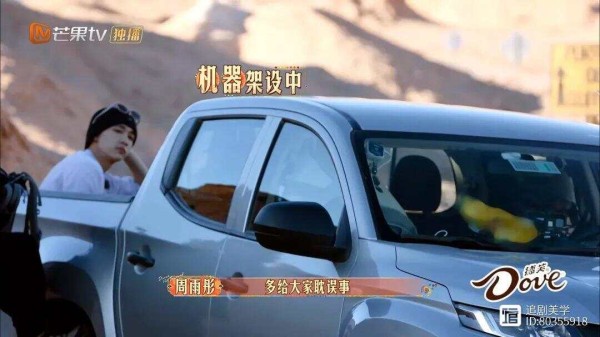 侯明昊买完票,就开车走了。开到景区停车场时,还很纳闷为什么皮卡还不到?答案就是因为周雨彤、金晨、荣梓杉要临时换位置,所以摄像机起也要移动。