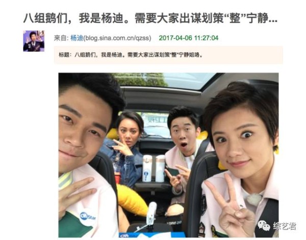 这里也要说一下杨迪真的太大胆了哈哈哈~在录制上面那档节目期间,身为八组鹅的杨迪在八组里发了一个征集向宁静提问题的帖子