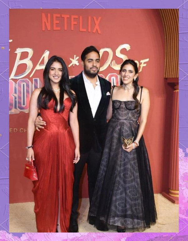 伊莎·安巴尼以独立姿态亮相,未携丈夫同行,与另一位女企业家并肩而立,尽显干练与优雅,无疑走上了“女强人”的道路。然而,最吸引众人目光的,还是新晋加入的安巴尼家族成员——拉迪卡·迈钱特。她身着红抹胸裙,手提迷你爱马仕凯莉包,黑发亮丽,成为全场镜头追逐的焦点。其身旁,大伯哥阿卡什与嫂子什洛卡·梅塔相伴而立。