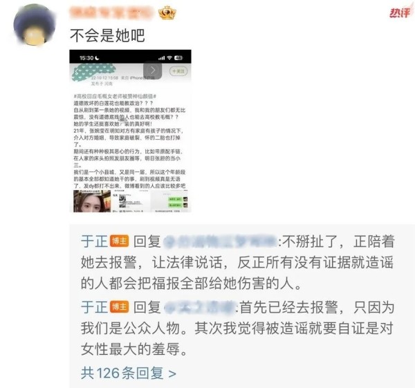 于正新签花旦被曝“知三当三”,上午出道下午塌房,于正称已报警