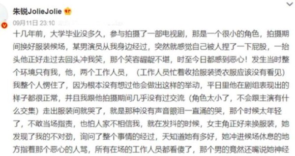 他被卷入其中的是一位叫朱锟的女演员,她是为了揭露自己出道时受到的非礼而出来的。