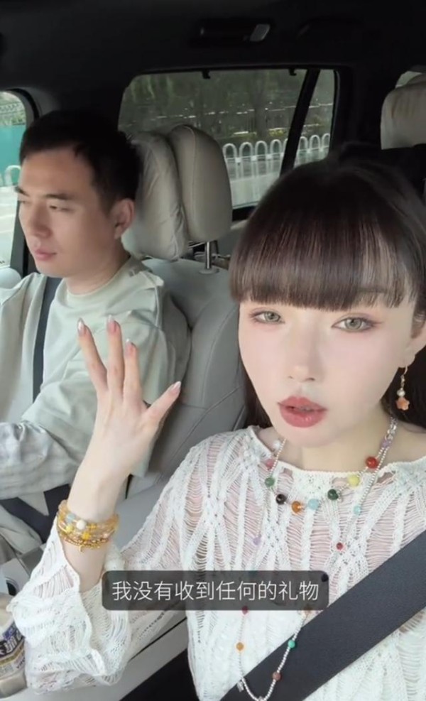 坐在副驾驶位置的夕又米,一上车就吐槽没有收到老公任何礼物,连鲜花都没有,对于没有给自己准备任何惊喜的老公,她表示:“任何的情绪价值都没有。”