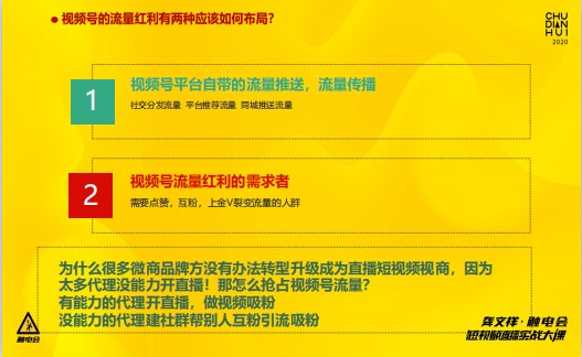 第一种红利是视频号自带的流量推送,就是它本身通过推送的红利。第二个是视频号流量红利的需求者,就是点赞能涨粉的互粉的上金V的人群。