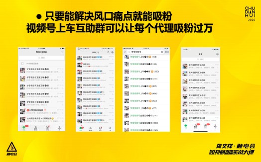 第一个就是储备流量,一定需要大量的社群进行裂变的。其实视频号现在没有什么公域流量,因为它的公域流量不是靠官方给你推送的,是真的链接朋友来给你推送的。