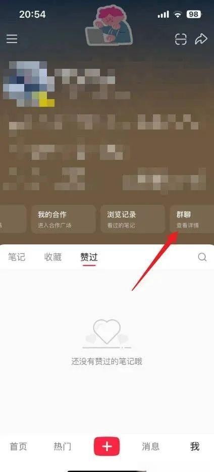 在苹果手机上启动小红书应用,进入个人主页,并点击“群聊”选项。