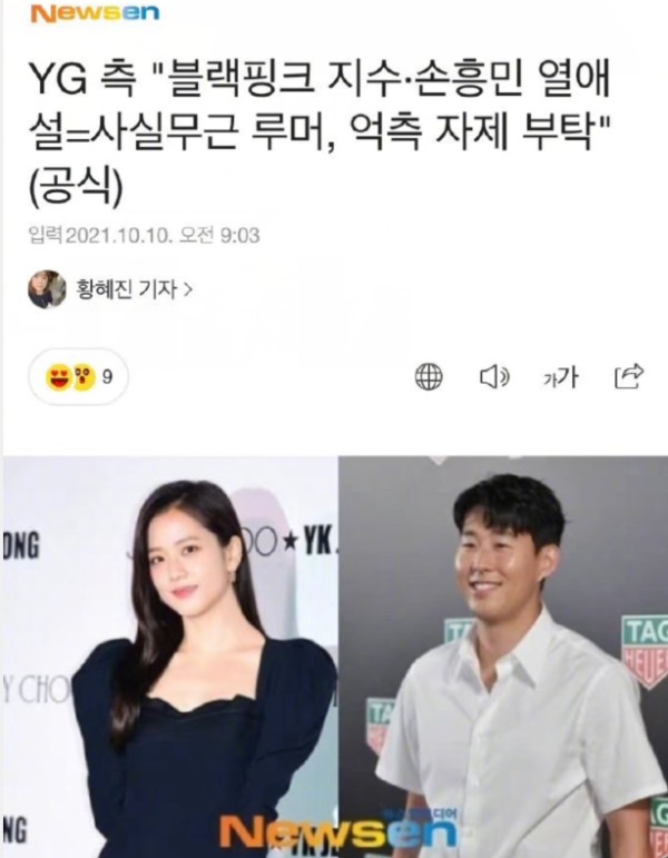 流言告破!YG否认金智秀孙兴慜的恋情绯闻,手环并非情侣只是相似