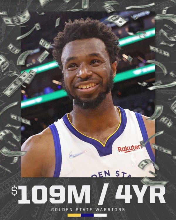 根据NBA著名记者Woj报道,经纪人透露,安德鲁威金斯已经同意与勇士签下一份4年1.09亿美元的提前续约合同,包含26-27赛季的球员选项。