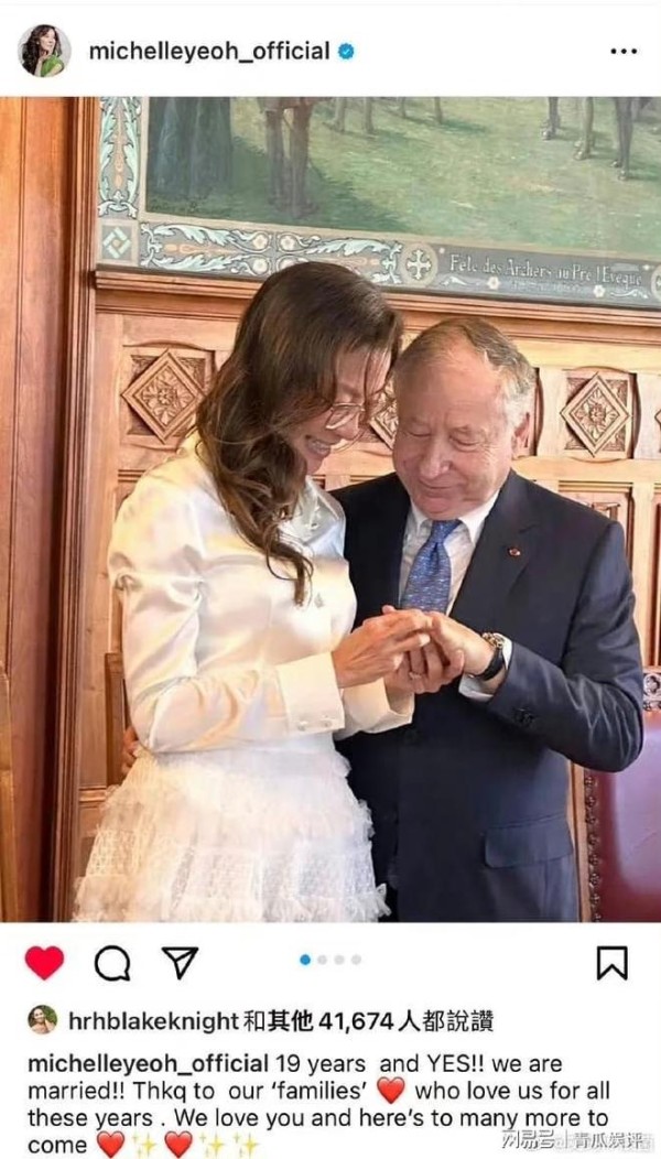 今天,杨紫琼正式在自己的社交网站上宣布自己结婚了,嫁给大自己16岁的让托德,结束了19年的爱情长跑。