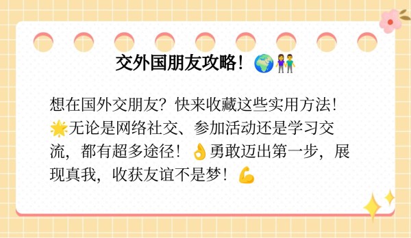 以下是为您总结的结交外国朋友的方法:
