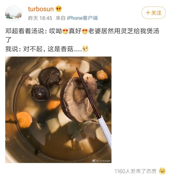 近日,因为煲汤的话题,邓超和孙俪再上了热搜,明明是蘑菇炖汤,邓超却说是灵芝,看来,邓超也没有经常进厨房啊。