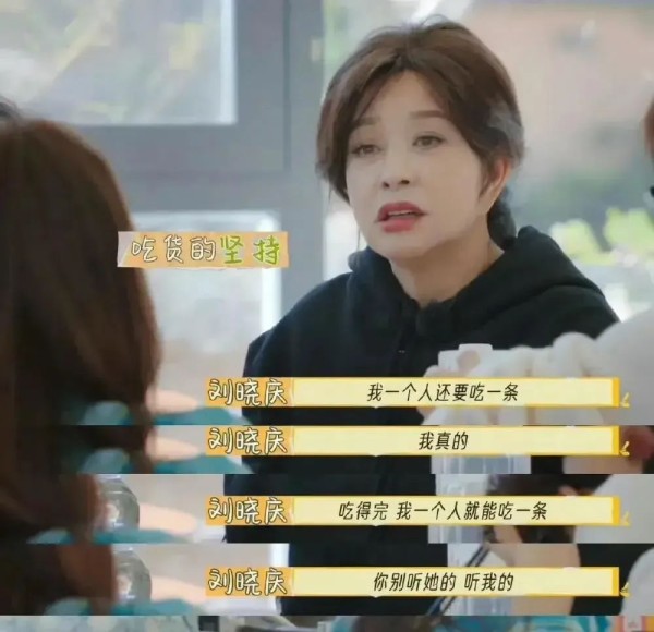 刘晓庆在节目里说:“要加鱼、自己都能吃一条、米饭也加点”,多次强调了蛋白质和主食的重要性。