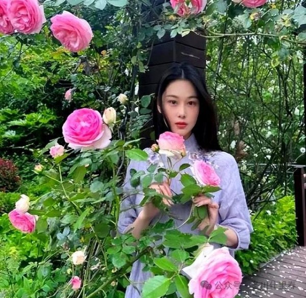 张馨予家的月季开花了,花美人更靓,网友:羡慕都说倦了!
