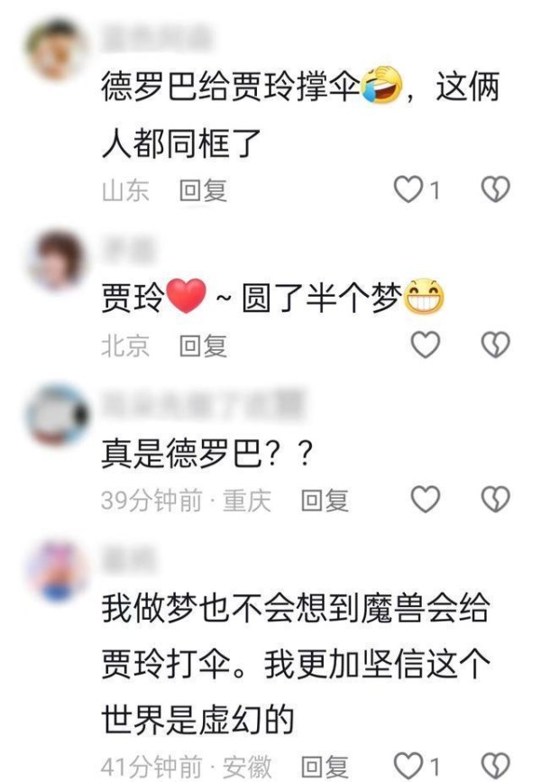 德罗巴为贾玲撑伞,梦幻联动