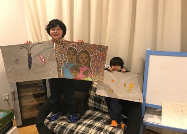 4月12日晚,邹市明之妻冉莹颖在社交媒体晒出爱子轩轩和皓皓作画的图片。