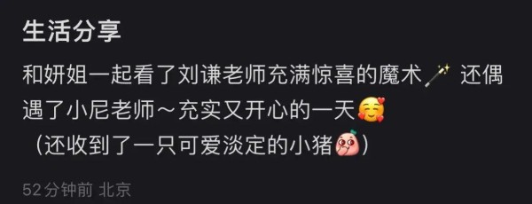 陈梦在个人社交平台上分享了和好朋友姜妍一同去观看刘谦魔术表演的照片,时间是8月17日。
