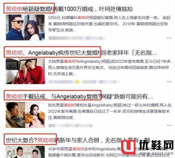 不知道大家是否还记得,过年去姥姥家串门时,黄晓明无名指上带了一枚钻石的戒指,当时很多人都怀疑她与baby复婚了,网上也出来了很多“黄晓明baby复婚”、“世纪大复婚”等文章。