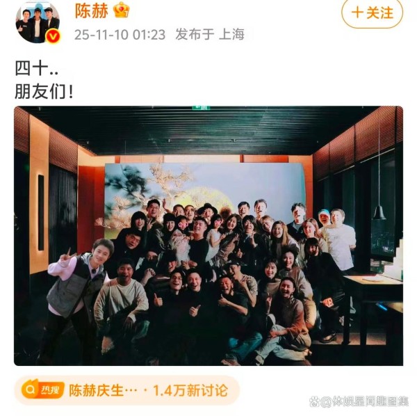 在庆生的合照中,可以看到陈赫与其他明星热闹的场面,但鹿晗却在照片中显得有些“消失”,被网友调侃。尽管如此,鹿晗能够亲自到场为好友庆祝,还是显示出他与陈赫深厚的友情。