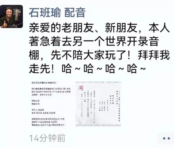 石班瑜66岁离开了人世,很多人对他的人生比较唏嘘,比较遗憾,毕竟作为周星驰的御用配音师,周星驰当演员当导演那么出名,赚到那么多钱,石班瑜自己只因为是配音演员,工作不稳定。后期据说还去当了导游。