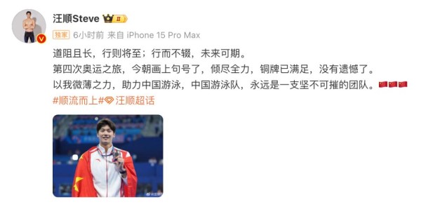 原标题:《四战奥运!汪顺:倾尽全力,没有遗憾了》