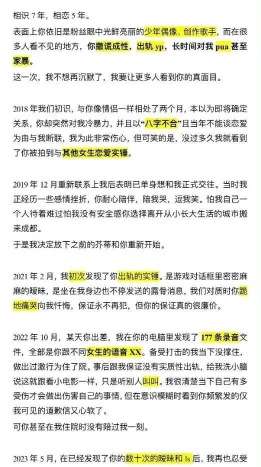 事情的起因是微博用户“原来是晶哥”(本名李晶)在4月2日晚发布的一篇长文。她详细控诉了与孟子坤长达五年恋爱期间遭受的种种伤害:从2018年相识、2019年正式交往后,男方就多次出轨并合理化自己的行为;2021年,她首次发现孟子坤与多人暧昧聊天;2022年更是在其电脑中发现177条与其他女性的亲密录音 。